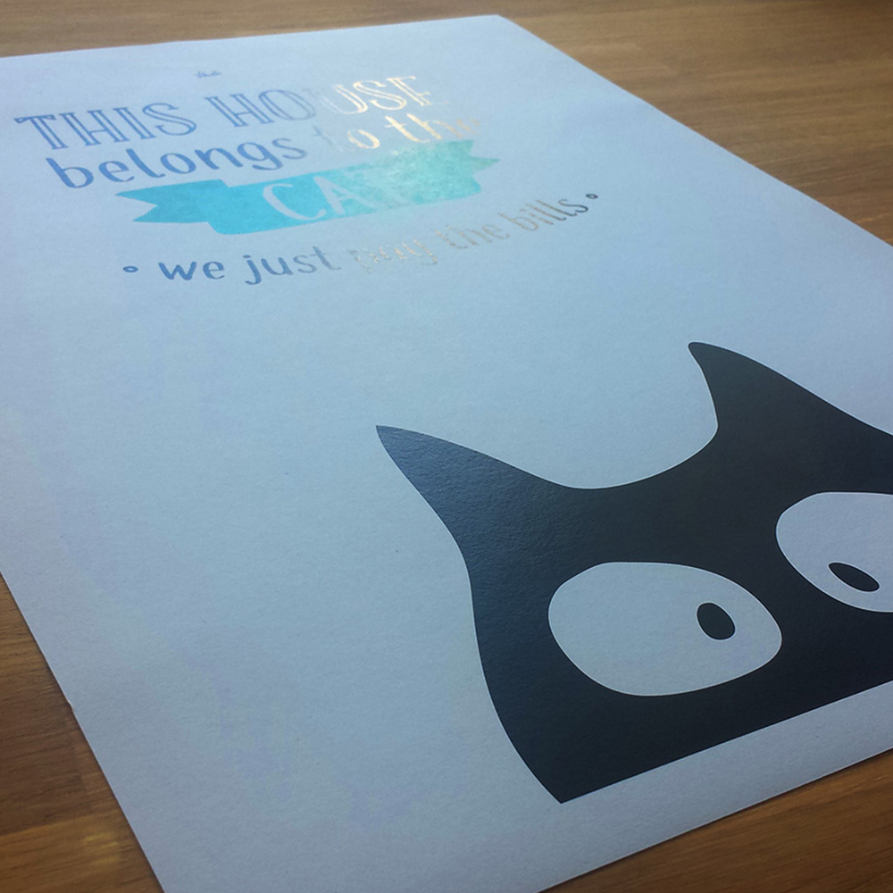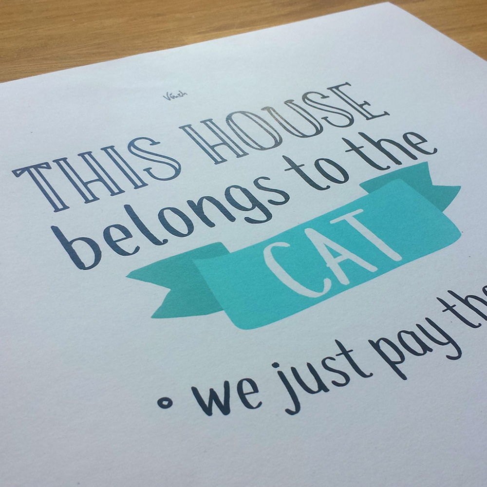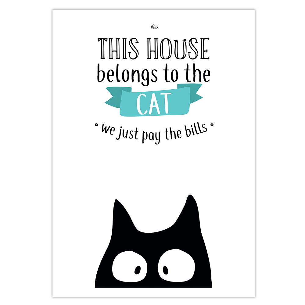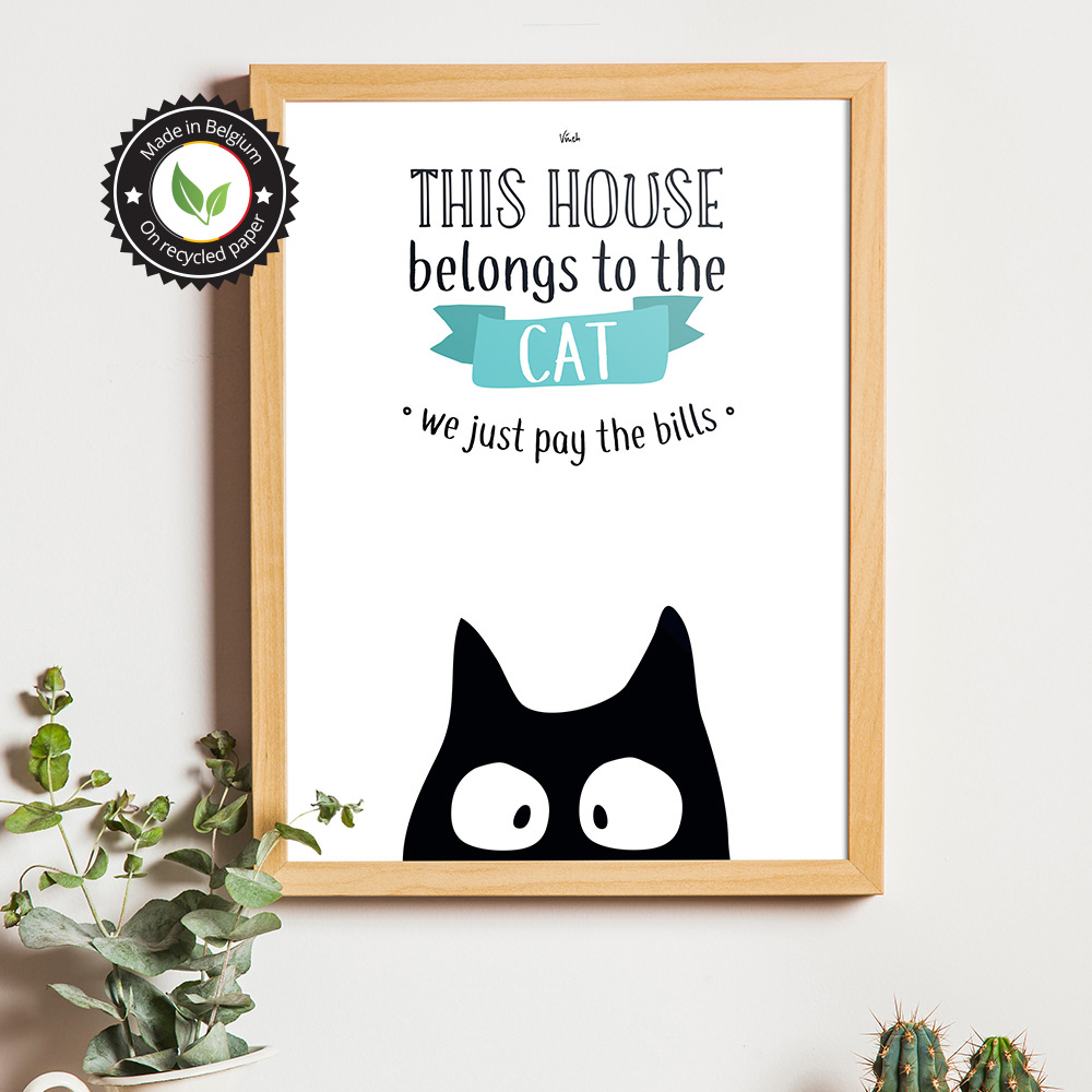 Affiche « cette maison appartient au chat, on ne fait que payer les factures ». Pour les animaux de compagnie chat rois de la maison