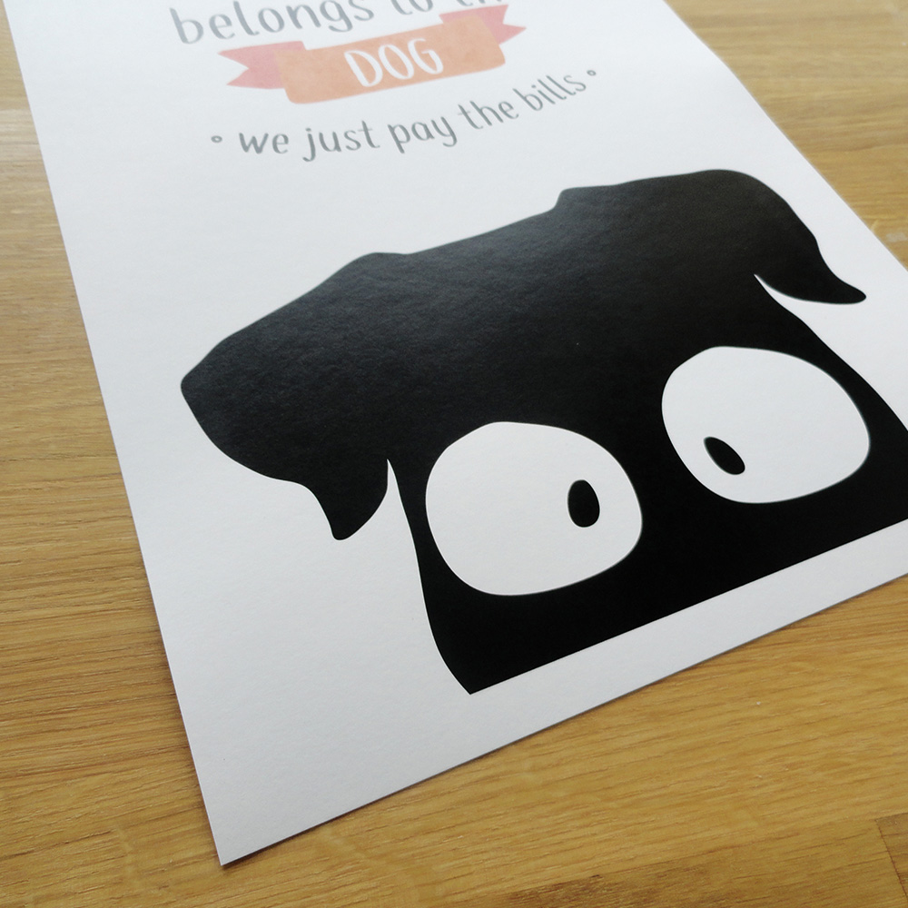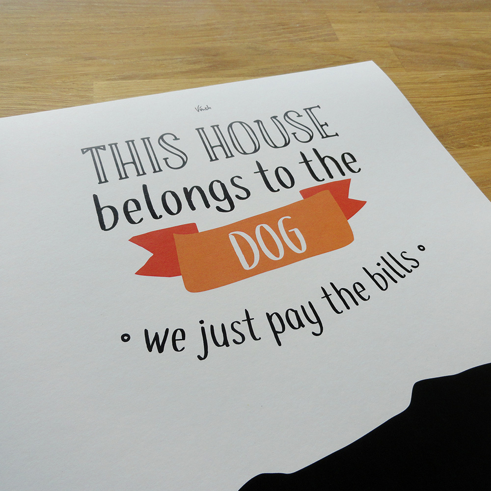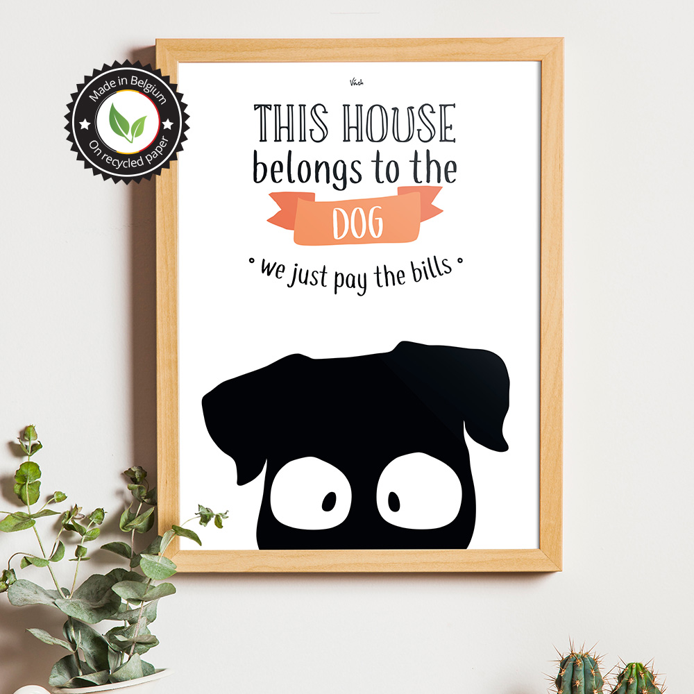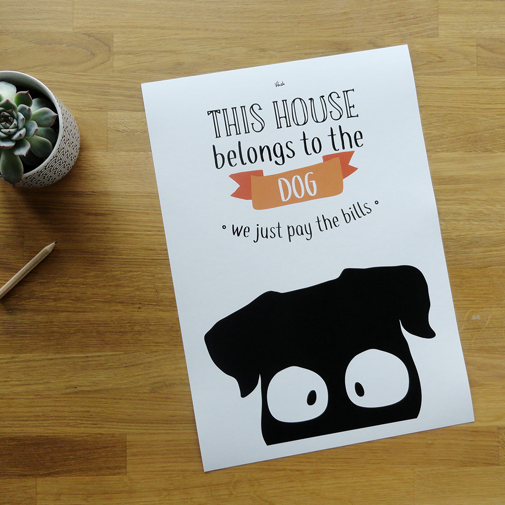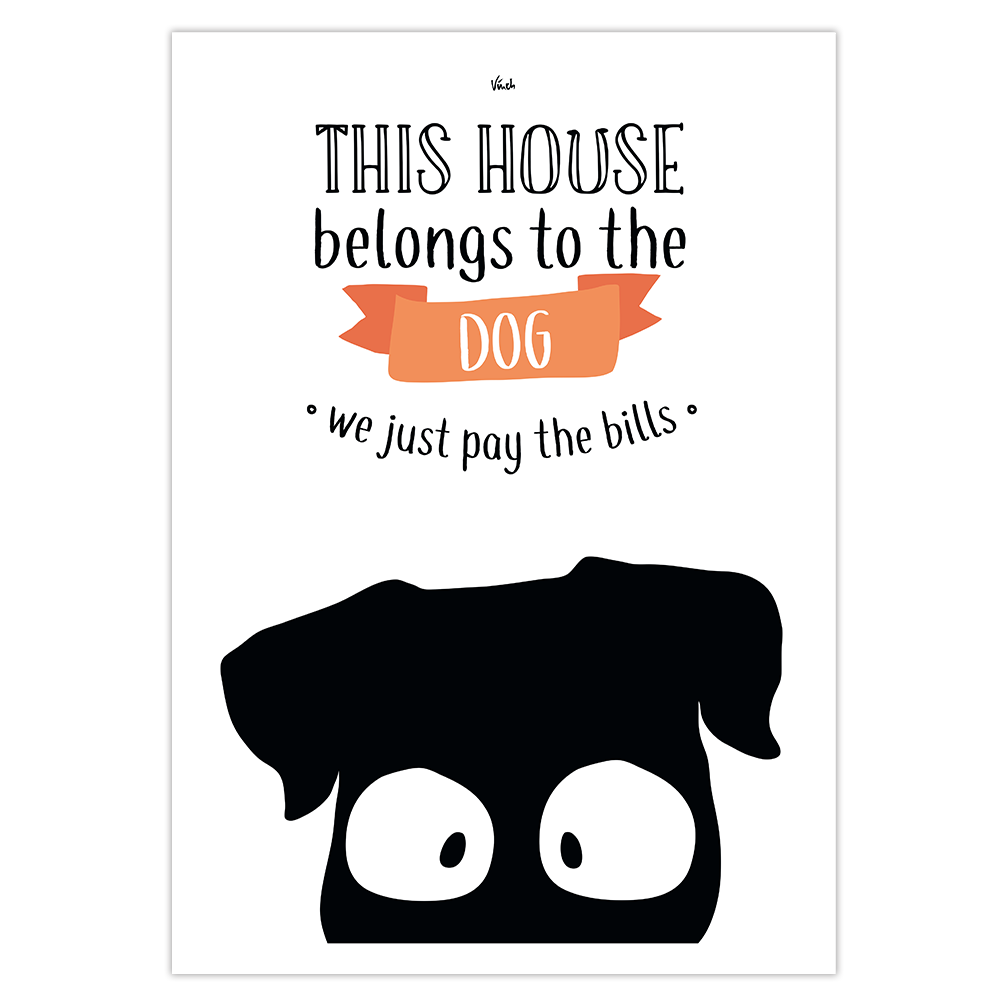 Affiche « cette maison appartient au chien, on ne fait que payer les factures ». Pour les animaux de compagnie chiens rois de la maison